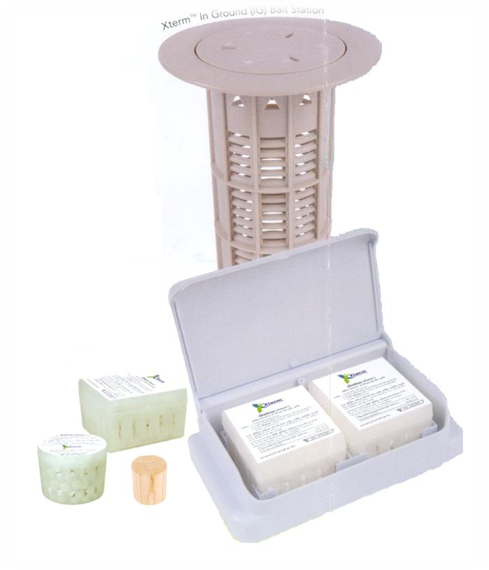 - สถานีบนดิน ( AG Box ) คุณลักษณะเฉพาะ ระบบเหยื่อเอ็กซ์เทอมป้องกันและกำจัดปลวก ลักษณะที่ปรากฏ : เป็นสถานีใส่เหยื่อล่อปลวกบนดิน วิธีใช้ : ต้องใช้โดยผู้ที่มีความชำนาญในการกำจัดปลวก